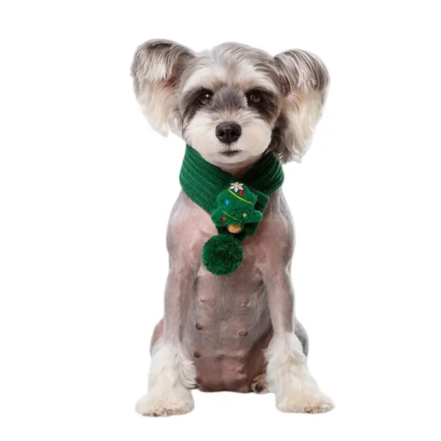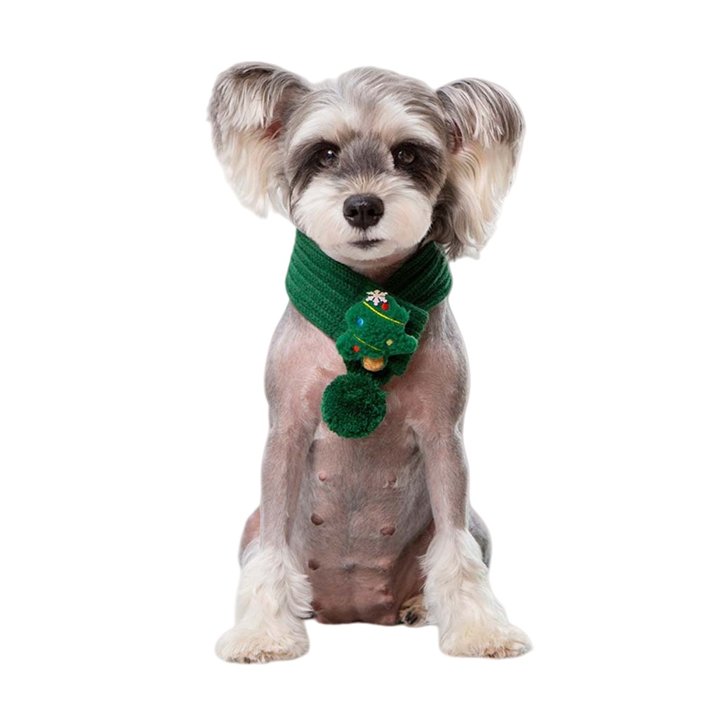 Zeleni božični šal za hišne ljubljenčke - pleten material, mehak in zračen ovratnik za mačke in pse S