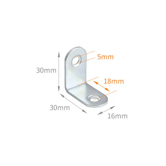 Trdna kotna opora: te železne kotne opornice zagotavljajo robustno podporo za lesene deske, omare in garderobne omare. Zasnovani so za varovanje povezav pod kotom 90 stopinj, kar zagotavlja strukturno stabilnost in dolgo življenjsko dobo.