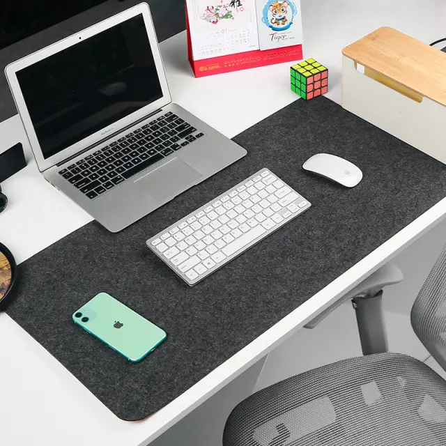 Udobna in topla: izdelana iz debele plasti klobučevine, ta namizna podloga zagotavlja izjemno udobje in toploto za vaše roke in zapestja, še posebej v hladnejših mesecih. Mehka površina ponuja tudi prijetno otipljivo izkušnjo.