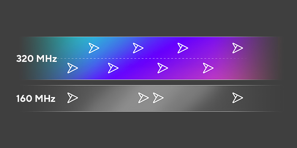 WiFi 7 uvaja povsem novo ultraširoko pasovno širino kanala 320 MHz v pasu 6 GHz, kar podvoji zmogljivost prenosa podatkov.