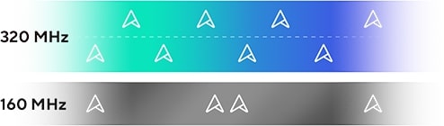WiFi 7 uvaja ultraširoko pasovno širino kanala 320 MHz v pasu 6 GHz, s čimer podvoji zmogljivost prenosa podatkov. To omogoča znatno več hkratnih prenosov z največjo možno hitrostjo.