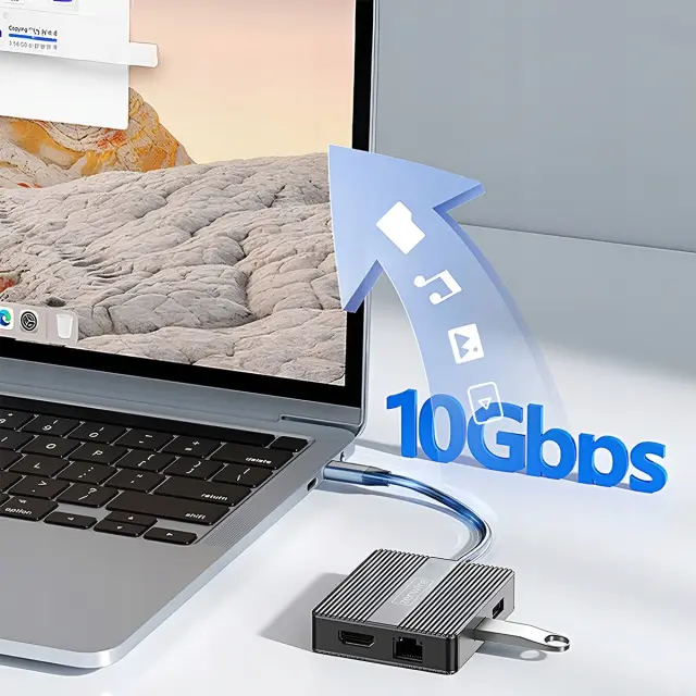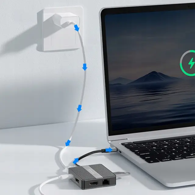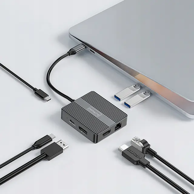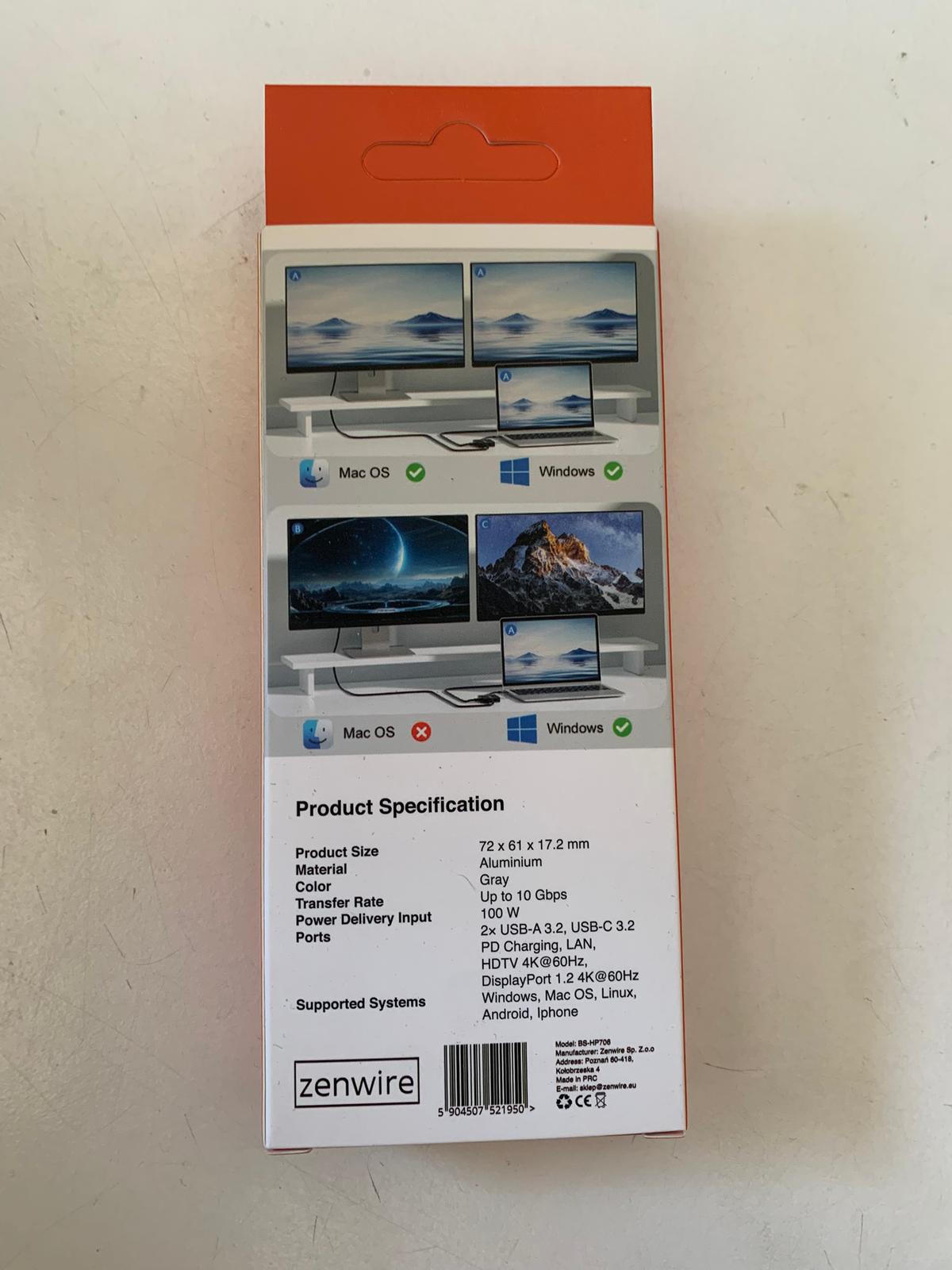 Zenwire BS-HP706 je kakovosten večnamenski USB‑C hub adapter 7v1, zasnovan za razširitev priključkov pri prenosnikih, tablicah in pametnih telefonih z USB‑C. Omogoča hkratno povezavo zaslonov, hitri prenos podatkov, stabilno omrežno povezavo ter polnjenje preko Power Delivery do 100 W. Deluje po načelu Plug & Play brez nameščanja gonilnikov in je združljiv z Windows, macOS, Linux, Android ter iPadOS (na modelih z USB‑C in podporo DP Alt Mode).