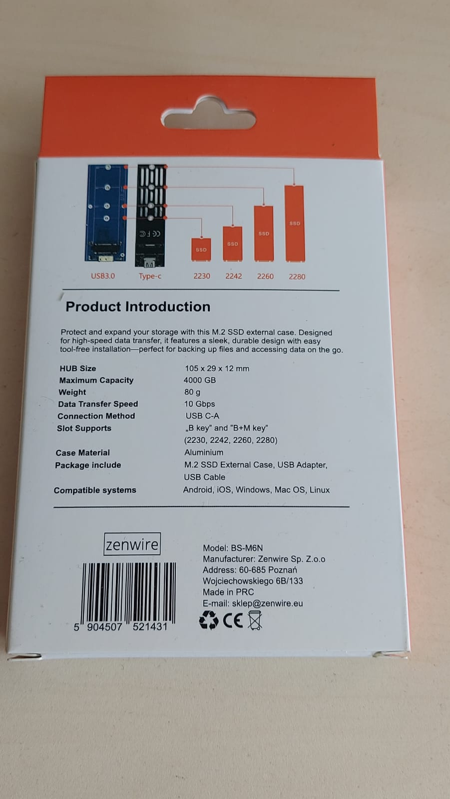 Z naprednim ohišjem M.2 PCIE NVME SSD proizvajalca Zenwire enostavno povečajte prostor za podatke in poskrbite za najhitrejše prenose do 10 GB/s. Primerno je za reže USB-C in USB 3.0/2.0.