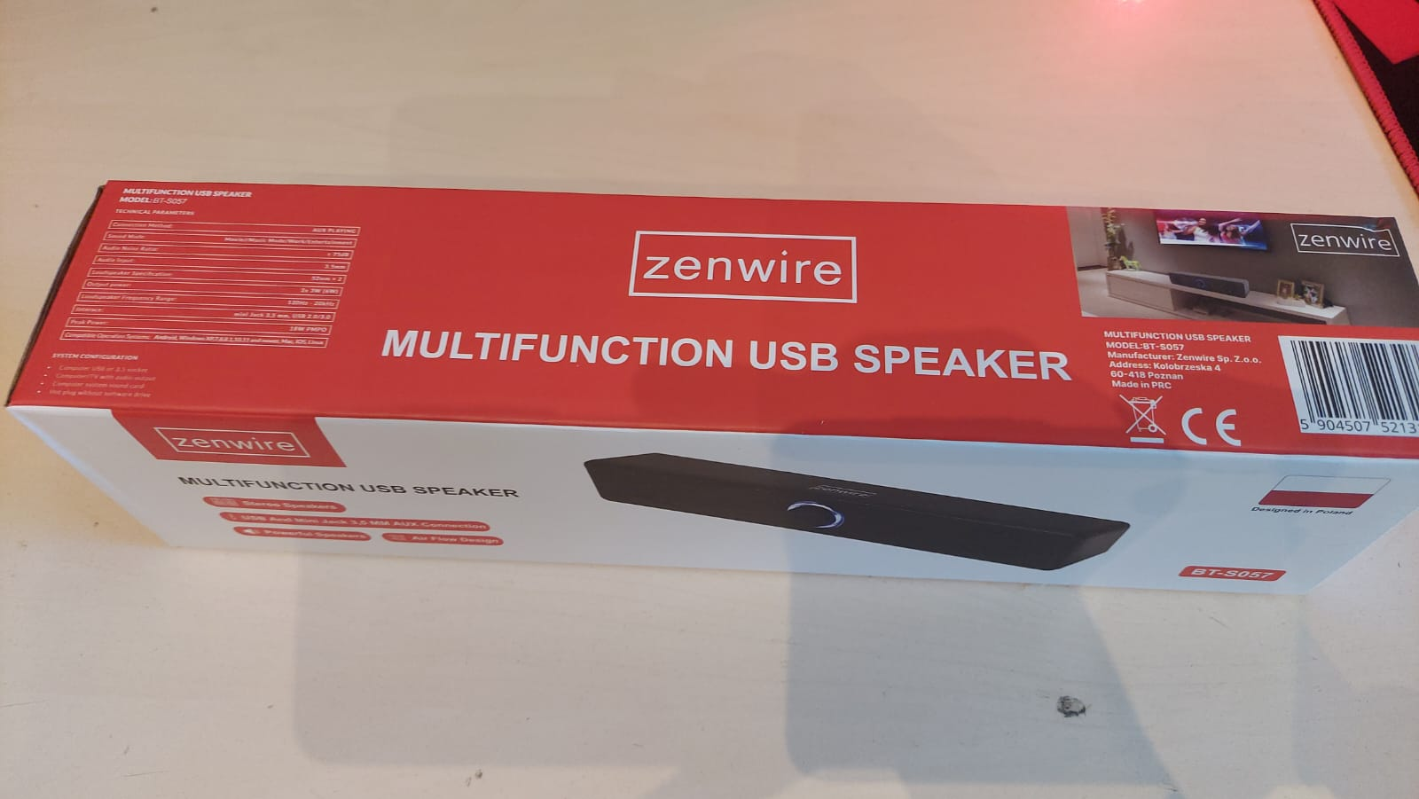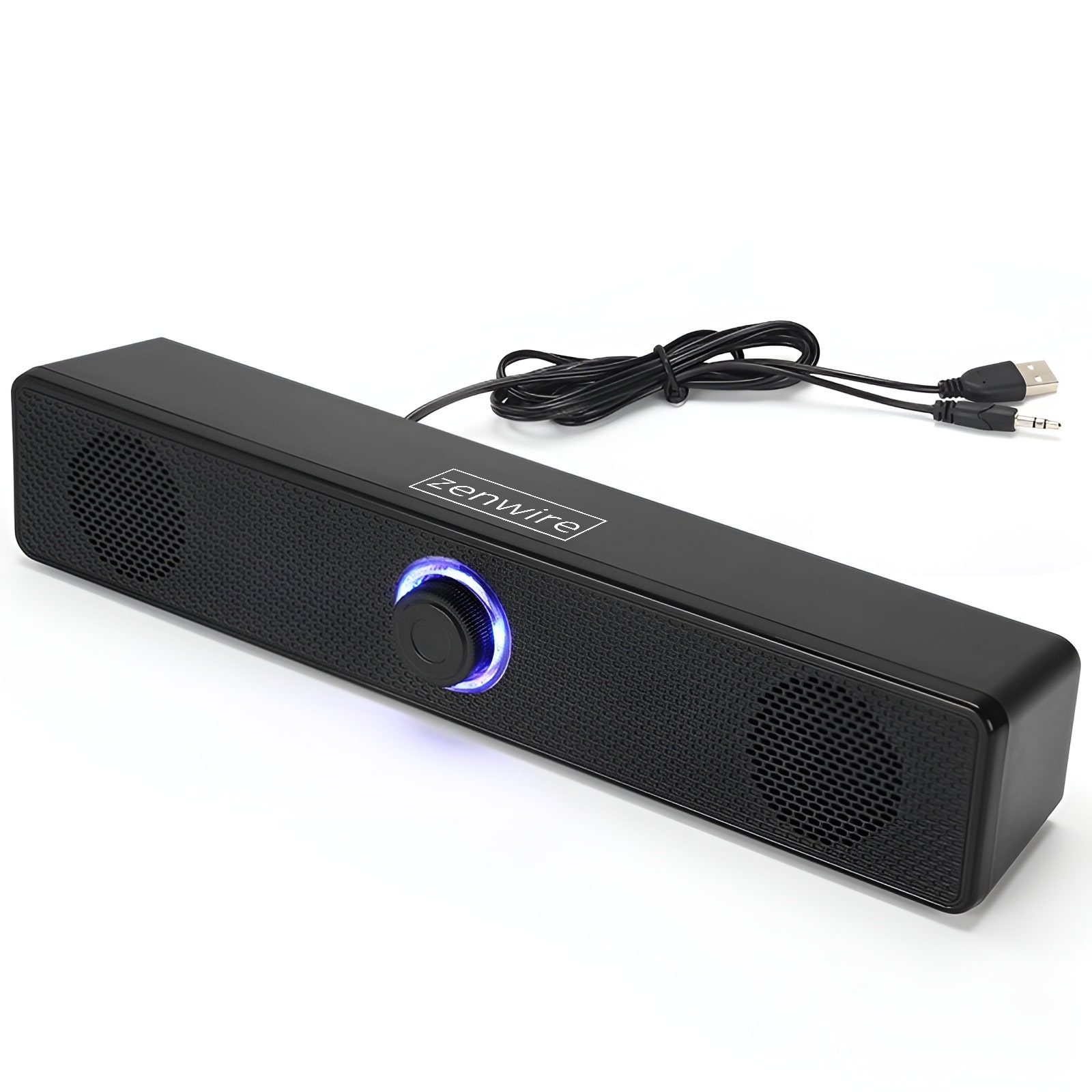 Zenwire BT-S057 USB Soundbar - Kompaktna zvočna vrstica z osvetlitvijo LED in gumbom za nastavitev glasnosti. Napaja se prek USB. Visoka kakovost zvoka (18 W PMPO) , robustno ohišje in univerzalna združljivost z računalniki in prenosniki. Idealen za glasbo, igre, filme in delo - odlično razmerje med kakovostjo in ceno.