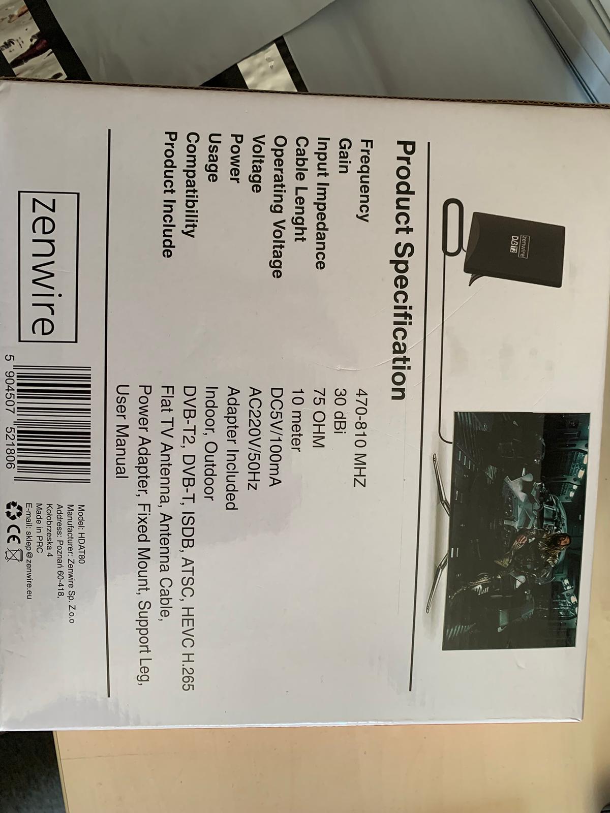 Antena Zenwire HDAT80 pracuje w szerokim zakresie częstotliwości 470–810 MHz, co umożliwia stabilny odbiór sygnałów naziemnej telewizji cyfrowej DVB-T oraz DVB-T2 / HEVC / H.265. Dzięki wbudowanemu wzmacniaczowi antena znakomicie radzi sobie zarówno w instalacji wewnętrznej, jak i zewnętrznej, zapewniając czysty i wyraźny obraz.