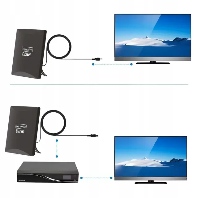 Antena Zenwire HDAT80 pracuje w szerokim zakresie częstotliwości 470–810 MHz, co umożliwia stabilny odbiór sygnałów naziemnej telewizji cyfrowej DVB-T oraz DVB-T2 / HEVC / H.265. Dzięki wbudowanemu wzmacniaczowi antena znakomicie radzi sobie zarówno w instalacji wewnętrznej, jak i zewnętrznej, zapewniając czysty i wyraźny obraz.