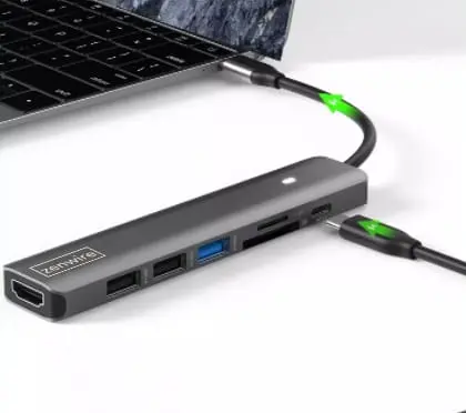 Visokokakovostni večnamenski adapter 7v1 podjetja ZENWIRE s podporo za vse najbolj potrebne priključke. Adapter deluje s strojno opremo Apple Macbook ter napravami Windows in Android. Najnovejši model 2022 je združljiv tudi z računalnikom Macbook s procesorjem M1.