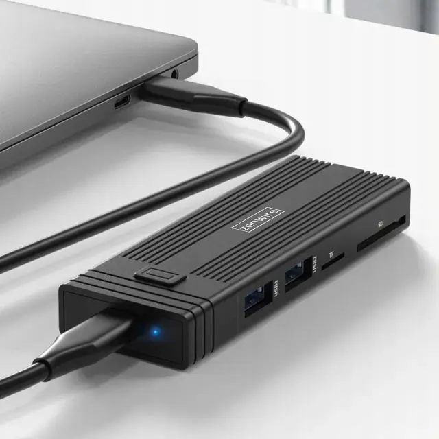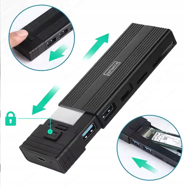 Ohišje Zenwire HUB63 m.2 PCIE NVME SSD s funkcijo vozlišča USB-C vam omogoča, da povečate funkcionalnost svoje strojne opreme, hkrati pa zagotavlja dodatna vrata in podporo za SSD-je m.2 SATA/NVME s podporo hitremu prenosu 10 GB/s s kapaciteto diskov do 8 TB.