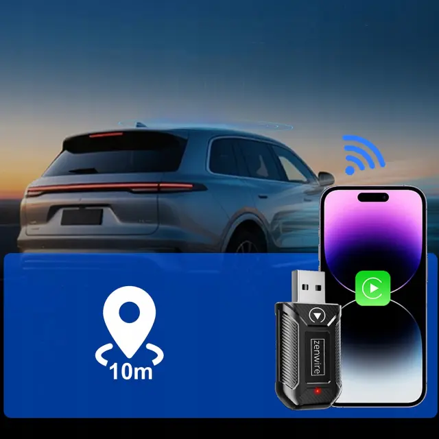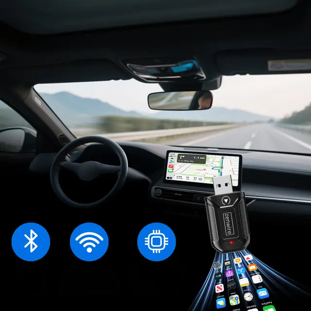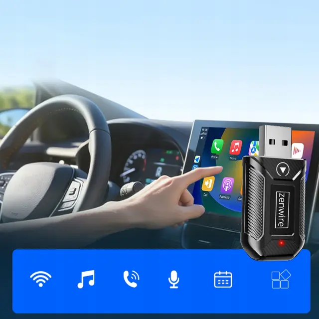 Zenwire M30 je ultra kompakten adapter, ki vaše obstoječe žično Apple CarPlay ali Android Auto v avtomobilu pretvori v popolnoma brezžično povezavo. Adapter priključite v USB ali USB‑C vtičnico (s priloženim pretvornikom), opravite prvo seznanitev in nato se bo telefon ob vsakem zagonu vozila povezoval samodejno – brez kablov in brez dodatnih aplikacij.
