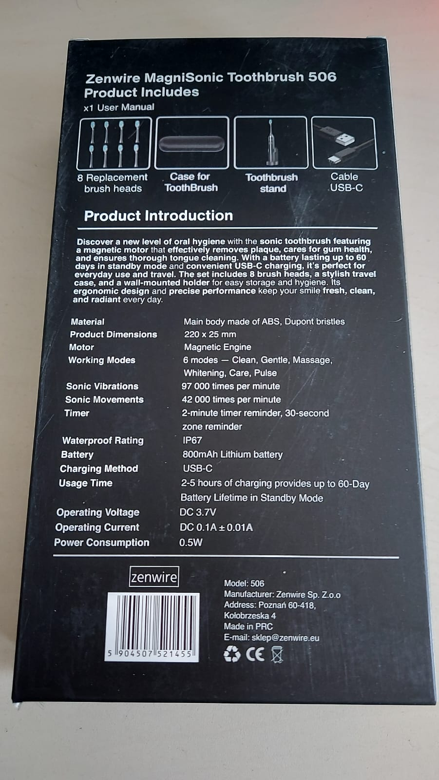 ✅ Skupaj s sonično zobno ščetko Zenwire MagniSonic 506 prejmete celoten komplet dodatne opreme za udobno in dolgotrajno uporabo.