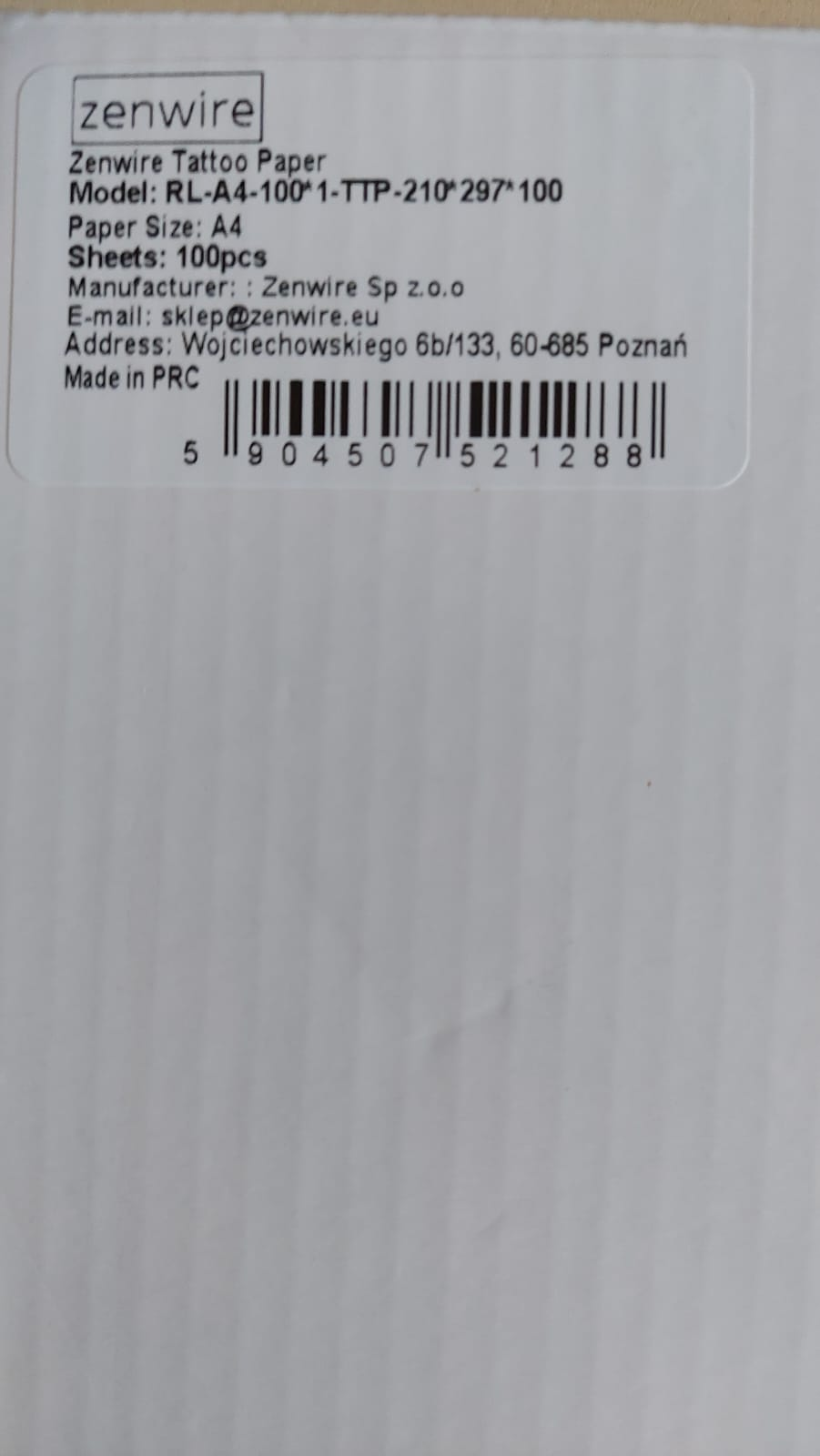 Termični papir Zenwire je zanesljiva in priročna rešitev, ki zagotavlja visokokakovostno tiskanje in natančen prenos vzorcev. Idealen za tetovatorje in profesionalne umetnike!