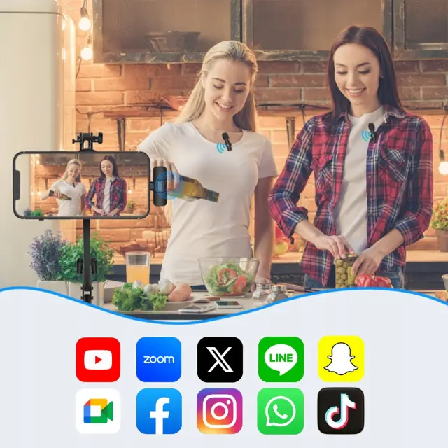 Sistem samodejnega seznanjanja zagotavlja takojšen zagon, brezžična tehnologija zasebnega prenosa 2,4G WiFi pa zagotavlja stabilen signal in minimalno zakasnitev . Idealen za snemanje na poti, intervjuje, oddajanje in spletno poučevanje.