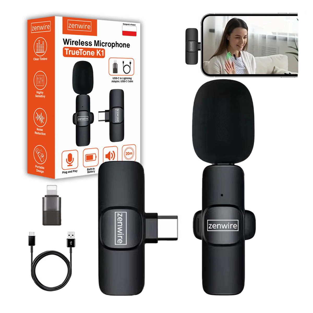 Zenwire TrueTone K1 je najsodobnejši brezžični mikrofon, ki združuje mobilnost, čistost zvoka in elegantno obliko. Idealen je za ustvarjalce vsebin, učitelje, vlogerje in vse, ki cenijo udobje in profesionalni zvok. Povezava USB-C omogoča, da ga lahko uporabljate skupaj s številnimi vrstami naprav, kot so pametni telefon, telefon, tablični računalnik, prenosni računalnik in računalnik. Široka združljivost s sistemi, kot so Android, Windows, IOS, Mac OS, Linux in drugi. Kompaktna velikost omogoča mobilno uporabo, komplet se bo prilegal tudi v vaš žep.