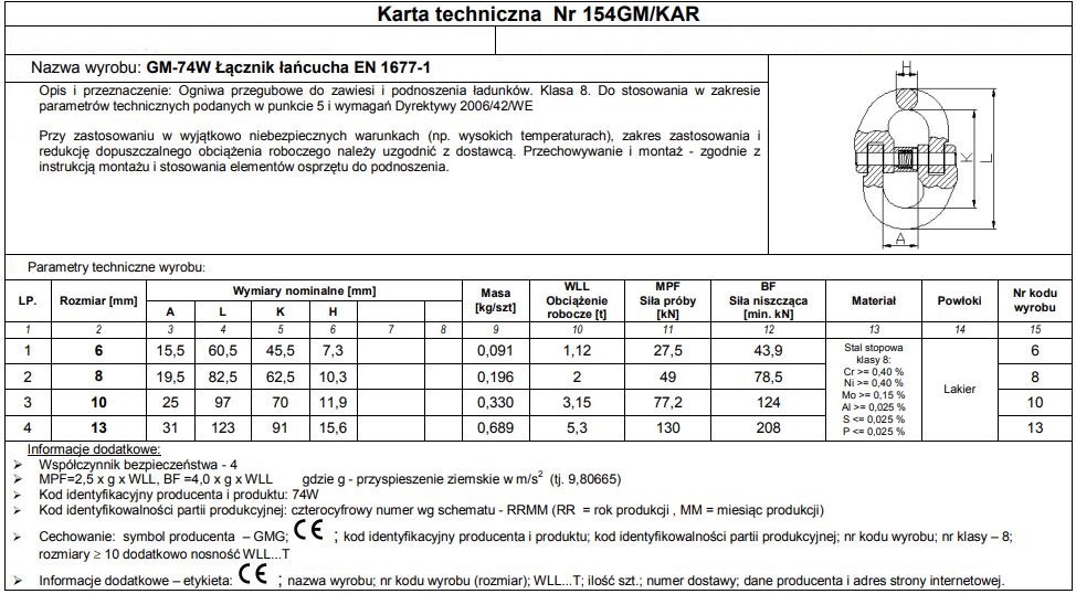 ZGLOBNI VELEV GM74W-G8 10MM WLL 3,15T