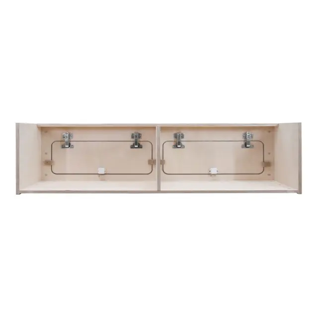 Naša 120 cm široka stropna omara za avtodom ponuja dovolj prostora za shranjevanje. S sredinsko pregrado je omarica ločena na dva enako velika predelka, ki sta popolna za organiziranje vaših stvari. Vsaka vrata imajo tečaj z mehkim zapiranjem za bolj nežno in brezhibno odpiranje in zapiranje, medtem ko ročaji na gumbe zagotavljajo, da so vaše stvari varno zaklenjene, ko ste na poti. Z odprtim zadnjim delom ta enota ponuja popolno vsestranskost, kar vam omogoča enostavno prilagajanje omare, da se brezhibno prilega notranjosti vašega avtodoma.