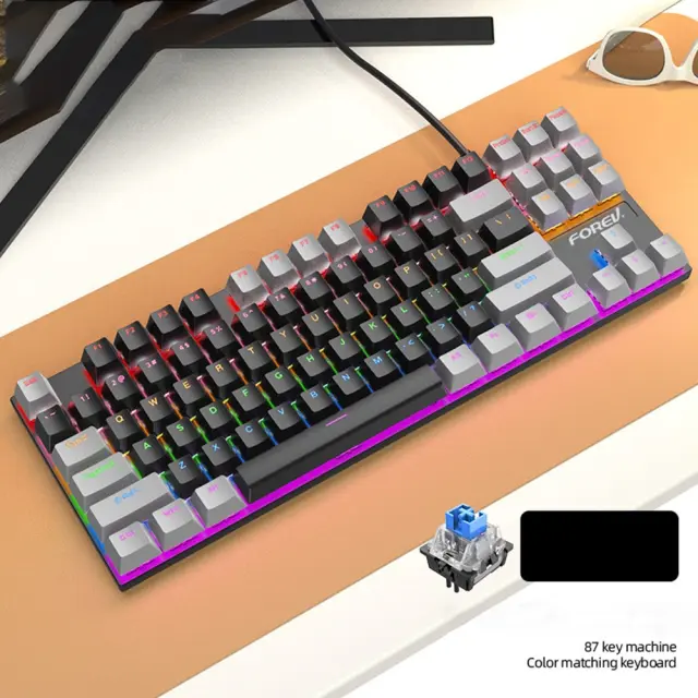 Žična 87-tipkovna mehanska tipkovnica - Barvno blokirana RGB igralna tipkovnica Black+Grey