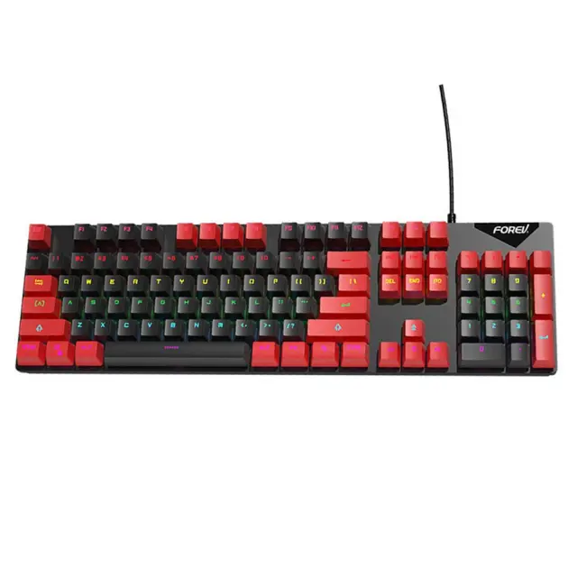 Žična mehanska tipkovnica mavrična osvetlitev modro stikalo 104 tipke Black/Red