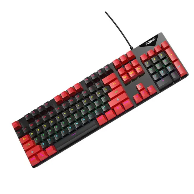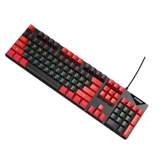 Prilagodljiva mavrična osvetlitev: Potopite se v živahno igralno vzdušje z mavrično osvetlitvijo te mehanske tipkovnice. Prilagodite svetlobne učinke, da se ujemajo z vašo nastavitvijo, ali ustvarite prilagojeno vizualno izkušnjo. Nastavljive stopnje svetlosti vam omogočajo, da prilagodite osvetlitev kateremu koli okolju, kar zagotavlja optimalno vidljivost in slog. Mavrična osvetlitev izboljša estetiko vaše igralne nastavitve in zagotavlja vizualno privlačno izkušnjo. Ta tipkovnica je združljiva z različnimi igralnimi nastavitvami in zagotavlja vizualno privlačno izkušnjo.