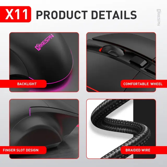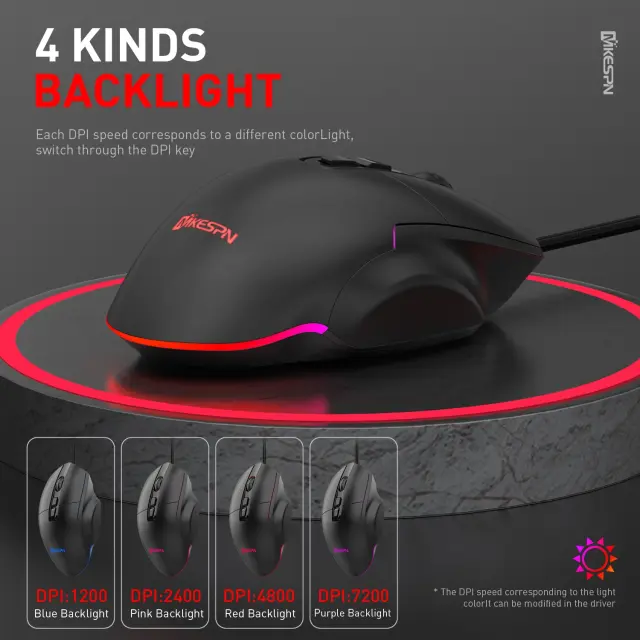 Žična RGB igralna miška s sedmimi gumbi, 7200 DPI, 1000 Hz, ergonomska oblika