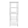 Kromirana prevleka ne izboljša le vizualne privlačnosti enote, temveč doda tudi zaščitno plast, zaradi česar je odporna proti koroziji in izjemno trpežna, kar zagotavlja njeno dolgo življenjsko dobo. Kljub svoji lahki žični strukturi ta samostoječi regal ohranja močno strukturno celovitost. Žična zasnova spodbuja odlično kroženje zraka, preprečuje zadrževanje vlage in zbiranje prahu. To pomaga vzdrževati higiensko okolje in izboljša enostavnost čiščenja.