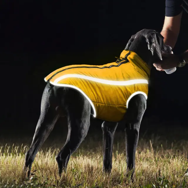 Zimska jakna Dolahovy predstavlja elegantno in funkcionalno izbira za pse, ki uživajo v dolgih sprehodih tudi v hladnih in vetrovnih dneh. Zunanja plast, izdelana iz visokokakovostnega poliestra, zagotavlja učinkovito zaščito pred vetrom in vlago med aktivnostmi na prostem. Mehka bombažna podloga ljubljenčka ovije v udobno toplino, hkrati pa uporaba koži prijaznih materialov preprečuje draženje ali občutek stiskanja. Jakna je zasnovana za vsakodnevno uporabo, kjer sta ključnega pomena tako zaščita pred vremenskimi vplivi kot popolna svoboda gibanja vašega psa.