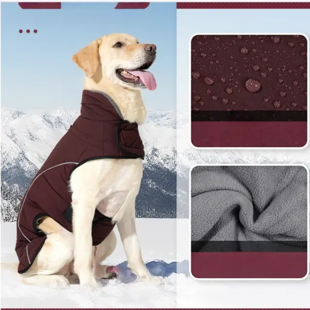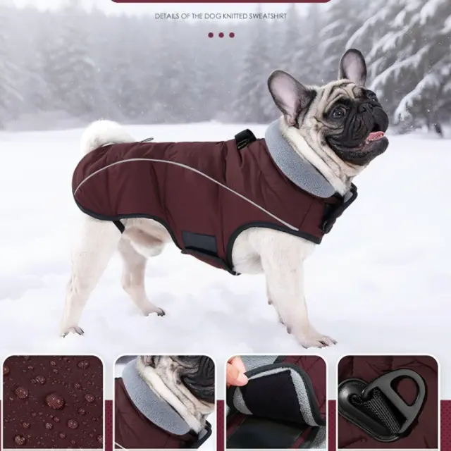 Zimska topla pasja jakna: Izolirana, vodoodporna jakna za pse z odsevniki DarkRed M