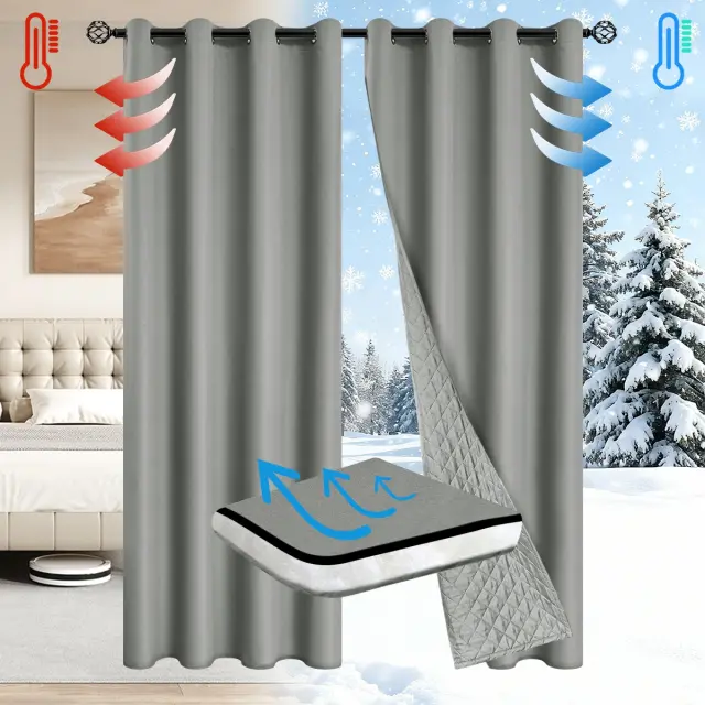 Zimska vetrovna toplotno izolirana zatemnitvena zavesa z ušesci za dnevno sobo Grey L