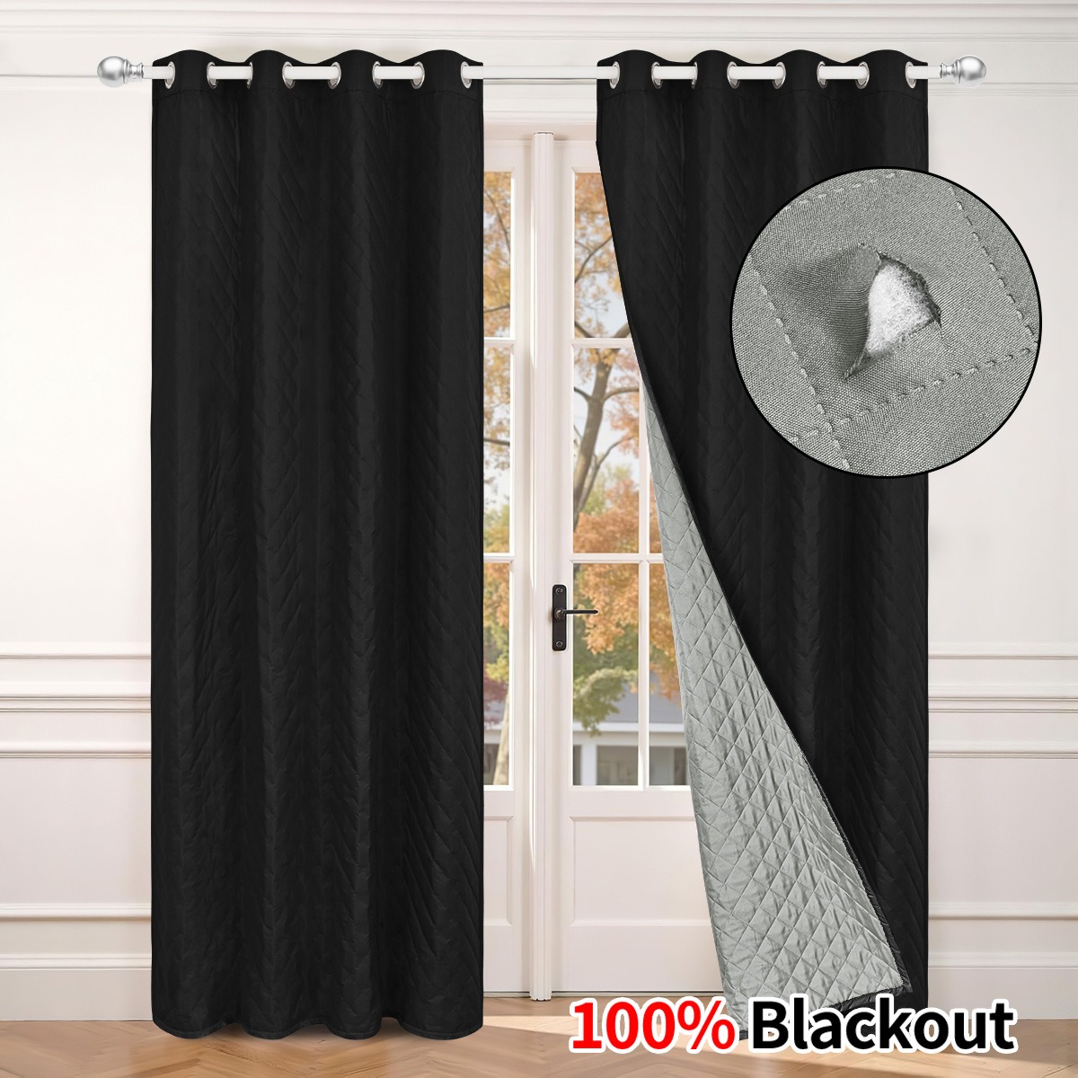 Thermal Insulation: Doživite vrhunsko toplotno izolacijo z našo zimsko zatemnitveno zaveso. Debela poliestrska tkanina in toplotna podloga učinkovito blokirata hladen prepih in zadržujeta toploto, kar ustvarja prijetno in udobno okolje v vaši dnevni sobi, spalnici ali katerem koli drugem prostoru. Uživajte v znatnih prihrankih energije z zmanjšanjem toplotnih izgub v zimskih mesecih s to toplotno izolirano okensko zaveso.