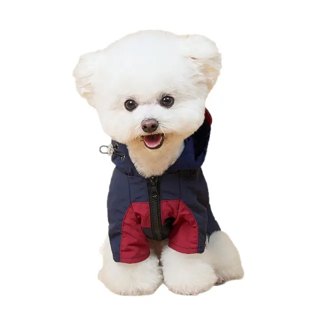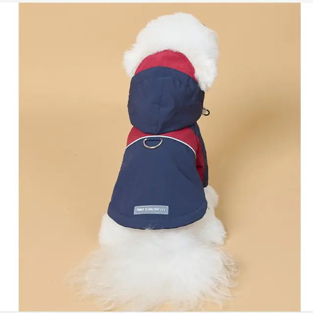 Zasnova s kapuco: Zasnova s kapuco tega pasjega plašča zagotavlja dodatno zaščito za pasjo glavo in vrat. Kapuco je mogoče enostavno prilagoditi velikosti pasje glave, kar zagotavlja tesno in udobno prileganje. Kapuca pomaga ohranjati pasja ušesa in vrat tople in suhe, preprečuje nelagodje in morebitne zdravstvene težave. Eleganten dizajn doda pridih sloga pasji garderobi, zaradi česar so videti modno, hkrati pa ostanejo zaščiteni. Kapuco lahko zložite nazaj, ko ni potrebna, kar zagotavlja vsestranskost in udobje. Ta pasji plašč s kapuco je kot nalašč za pse, ki so občutljivi na mraz ali tiste, ki preprosto uživajo v dodatni zaščiti. Nastavljivi trakovi zagotavljajo varno prileganje in preprečujejo, da bi kapuca zdrsnila med aktivnostmi. Zaradi tega premišljenega oblikovalskega elementa je ta plašč praktična in elegantna izbira za vsakega lastnika psa.