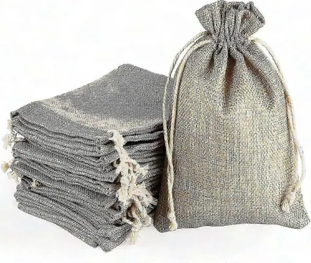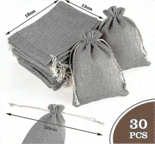 Zk-30 Pack Naravna vrečka z vrvico za poročni nakit, darilo za božično zabavo, organizator iz jute za večkratno uporabo (13x18 cm)