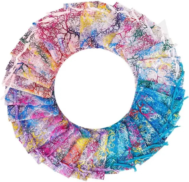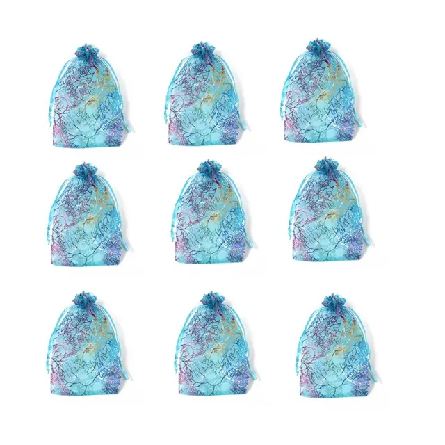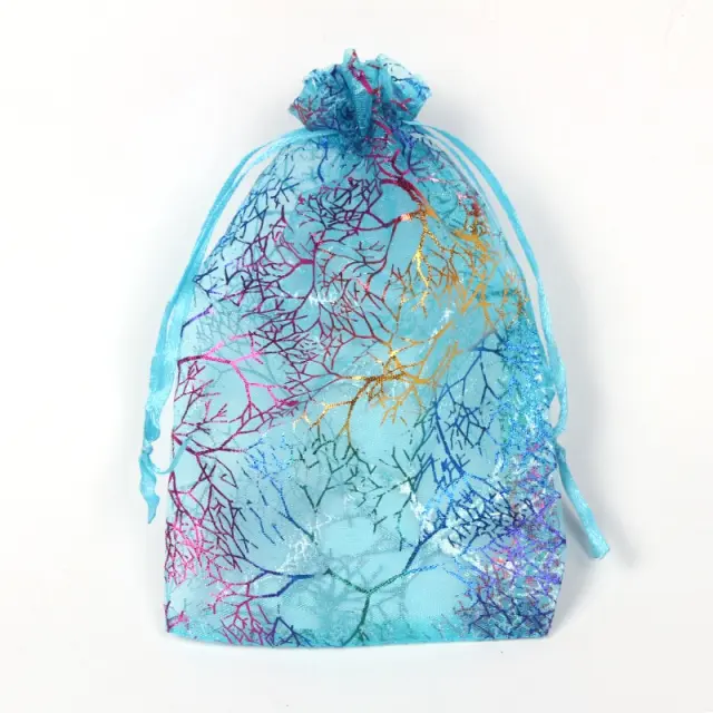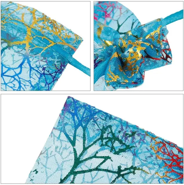 Zlate iridescentne organza vrečke s koralnim vzorcem 10x15cm (50 kosov)