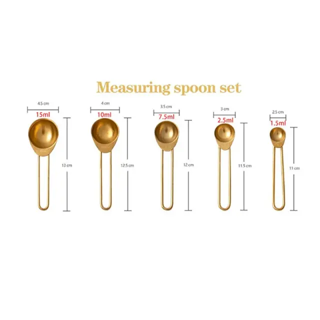 Zlate merilne žlice iz nerjavečega jekla 430 - 5-delni set za peko