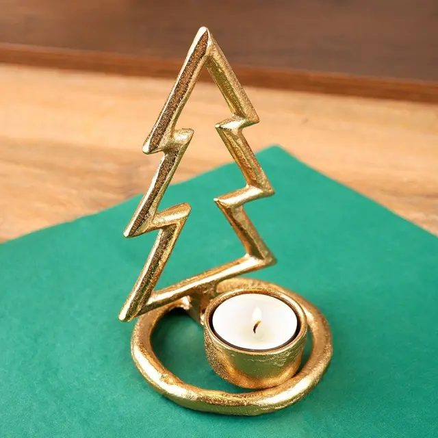 Zlati aluminijasti svečnik za božično drevo 16 cm