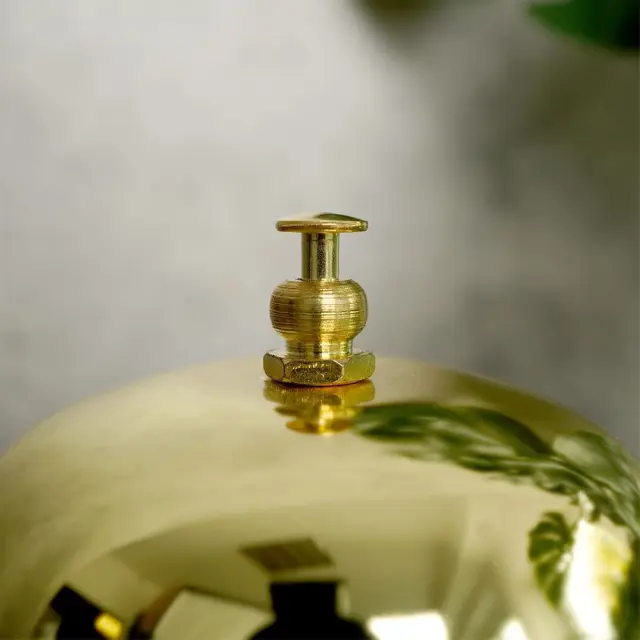 ✅ KOVINSKI - Izdelan iz zlate kovine s črnim podstavkom.
