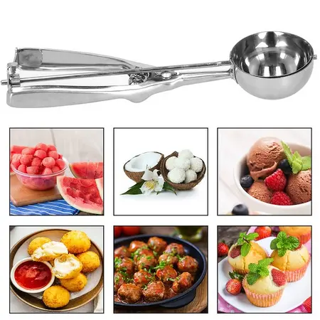 Radi svojim gostom postrežete zmrznjene sladice? Za pripravo popolnoma okroglih porcij sladoleda potrebujete zajemalko za sladoled znamke Springos. Zahvaljujoč aparatu za pripravo sladoleda lahko odlično oblikujete zmes in ustvarite čudovite skodelice polne sladoleda. Žlička je uporabna tudi v vsakodnevni uporabi za serviranje porcij riža, kaš in pirejev. krompirja. Hrana ne bo imela samo Ne samo, da je okusna, ampak tudi lepo izgleda. Žlica je izdelana iz nerjavečega jekla, zaradi česar je odporna na deformacije tudi pri zajemanju trdega testa. Hkrati je pripomoček lahek, priročen in odporen, s kakovostno vzmetjo in oblikovano lopatko. Hrano enostavno poberemo in postavimo na krožnik ali v solatno skledo. Lastnosti: Znamka: Springos Material: Jeklo Dolžina: 23,5 cm Premer: 6 cm Varno: Odobreno za stik z živili Koda izdelka: KI0104