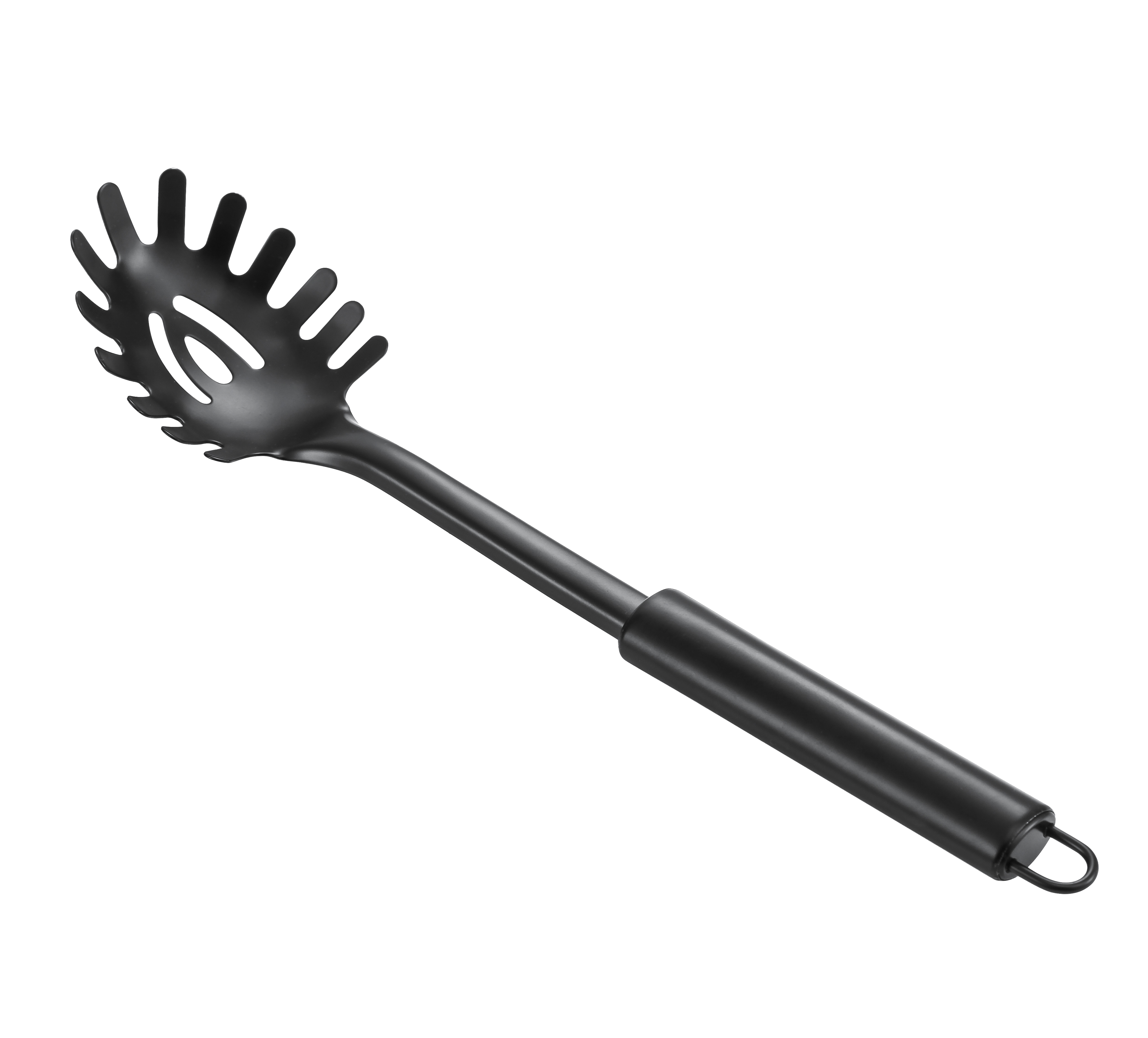 Spoznajte žlico za testenine Modern Kitchen — eleganten in funkcionalen kuhinjski pripomoček iz visokokakovostnega nerjavečega jekla. Njena moderna črna obdelava daje minimalističen in prefinjen videz, hkrati pa zagotavlja odpornost proti rji ter dolgo življenjsko dobo tudi pri vsakodnevni uporabi. Ergonomičen ročaj omogoča udoben oprijem, praktična odprtina za obešanje pa poskrbi, da je žlica vedno pri roki.