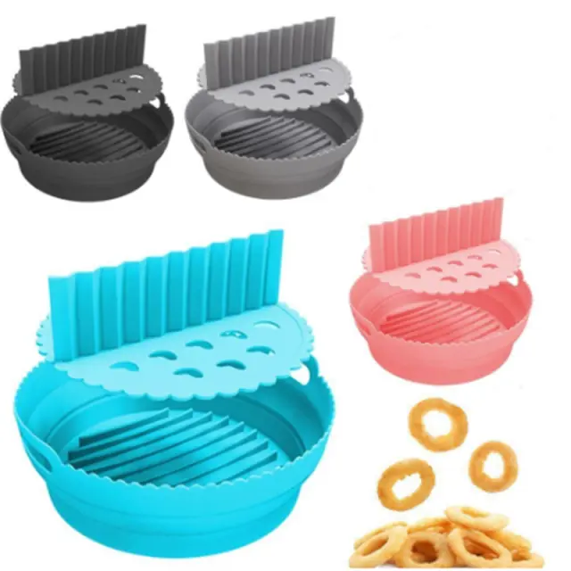 Okrogla oblika iz silikona, odobrenega za hrano. Popolnoma se prilega cvrtniku in preprečuje lepljive in zažgane ostanke hrane v vašem Air Fryerju. Posoda je za večkratno uporabo in jo lahko perete v pomivalnem stroju.