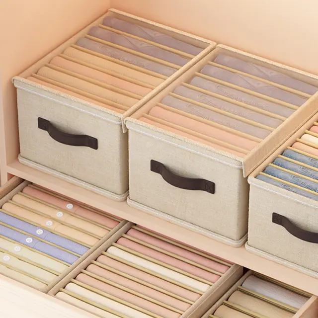 Prostorna zasnova: Maksimizirajte prostor v omari s tem učinkovitim organizatorjem. Njegovih sedem predalov lepo shrani kavbojke, hlače ali majice, jih loči in preprečuje gubanje. Zložljiva zasnova omogoča enostavno shranjevanje, ko ni v uporabi.