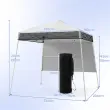 Enostavna postavitev : Zahvaljujoč zložljivi zasnovi je pop-up gazebo enostavno postaviti, ne da bi za to potrebovali orodje. Vse, kar morate storiti, je, da razgrnete okvir, pritrdite streho z zaponkami Velcro in pritrdite okvir z gumbi proti zatikanju.