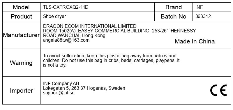 Da se izognete zadušitvi, hranite to plastično vrečko stran od dojenčkov in otrok. Te vrečke ne uporabljajte v zibelkah, posteljah, vozičkih, stajicah. To ni igrača.