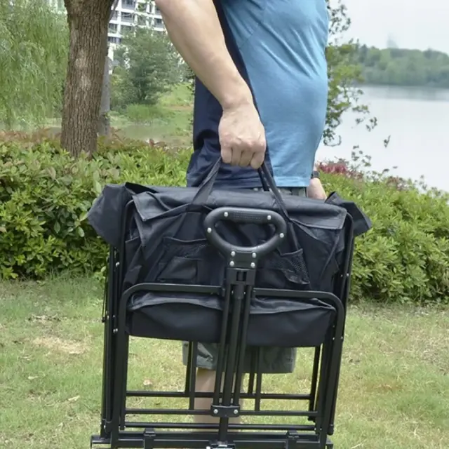 Olajšajte si prevoz opreme, hrane in drugih predmetov na plaži, kampiranju ali izletih z zložljivim transportnim vozičkom Buggy! Ta robusten, a hkrati lahkoten voziček omogoča prevoz do 100 kg tovora, medtem ko njegova velika kolesa zagotavljajo gladko vožnjo po pesku, travi in drugih neravnih terenih. Zahvaljujoč hitremu sistemu zlaganja ga enostavno shranite in prenašate.