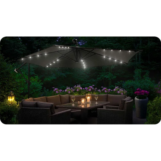 Velik vrtni senčnik z LED lučkami Plonos 350 cm Plonus: 488200 Barva oblazinjenja: stilsko siva ✅Za tiste, ki radi preživljate čas na prostem – na terasi, balkonu, vrtu ali plaži.