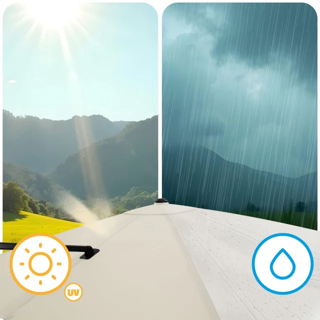 ✅ Zračenje v zgornjem delu Zračnik na vrhu vrtnega dežnika omogoča prost pretok zraka, kar preprečuje kopičenje toplote in prekomerno obremenitev materiala.