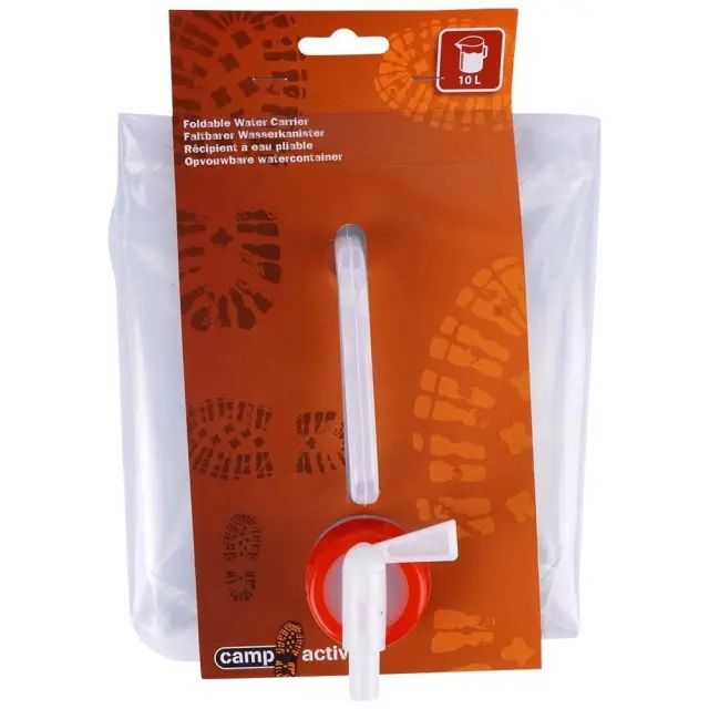 Rezervoar za pitno vodo s pipo. Popoln za izlete, kampiranje, pa tudi na vrtu. Zahvaljujoč dejstvu, da je zložljiv, ga lahko enostavno prenašamo. Ima praktično pipo, ki olajša točenje vode, in ročaj, ki omogoča enostavno in priročno prenašanje rezervoarja.