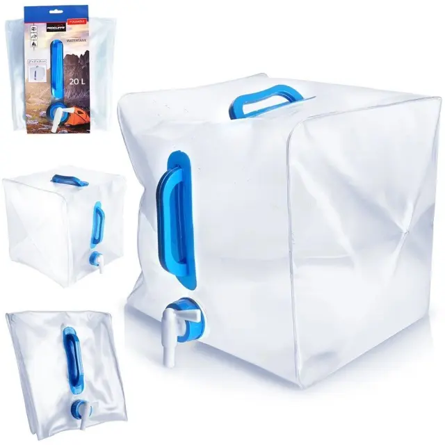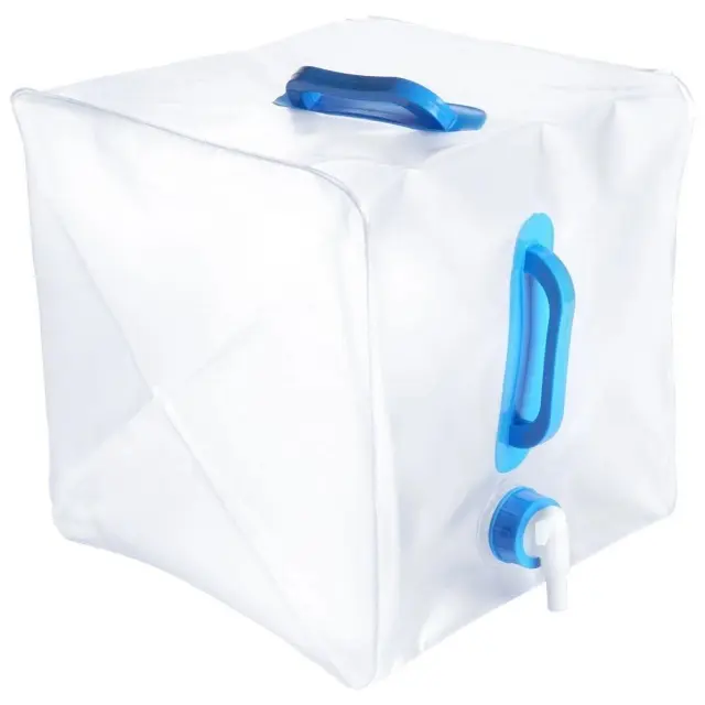 Rezervoar za pitno vodo s pipo. Popoln za izlete, kampiranje, pa tudi na vrtu. Zahvaljujoč dejstvu, da je zložljiv, ga lahko enostavno prenašamo. Ima praktično pipo, ki olajša točenje vode, in ročaj, ki omogoča enostavno in priročno prenašanje rezervoarja.
