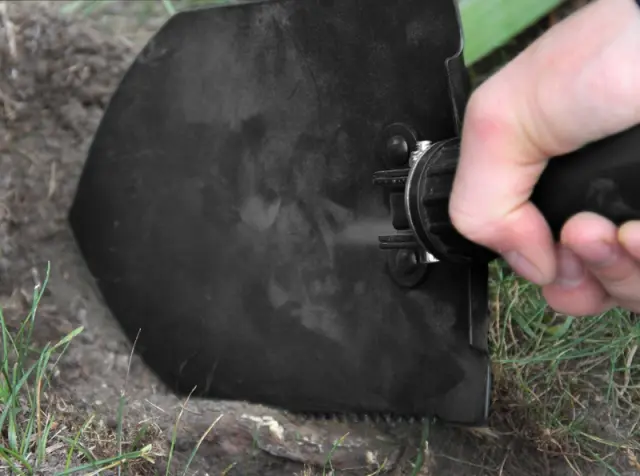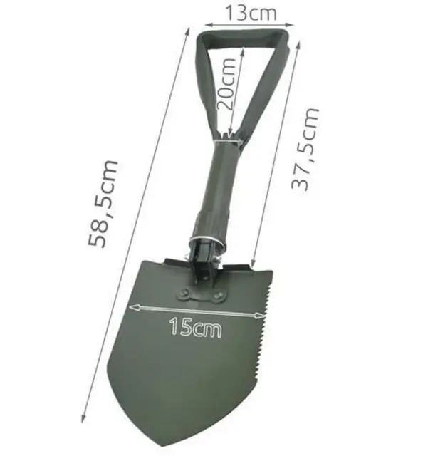 Lopata iz kovine, enostavna za uporabo. Nenadomestljiv doma, v avtu, na parceli, na izletu, pohodu ali ribolovu. Zahvaljujoč majhnim dimenzijam se po zlaganju zlahka prilega v nahrbtnik, torbo, organizator itd . Lopato lahko uporabljate kot lopato, kramp ali žago. V kompletu je prevleka z zanko za pas za pritrditev na pas. Uporabno tudi med na primer izleti za preživetje na prostem.