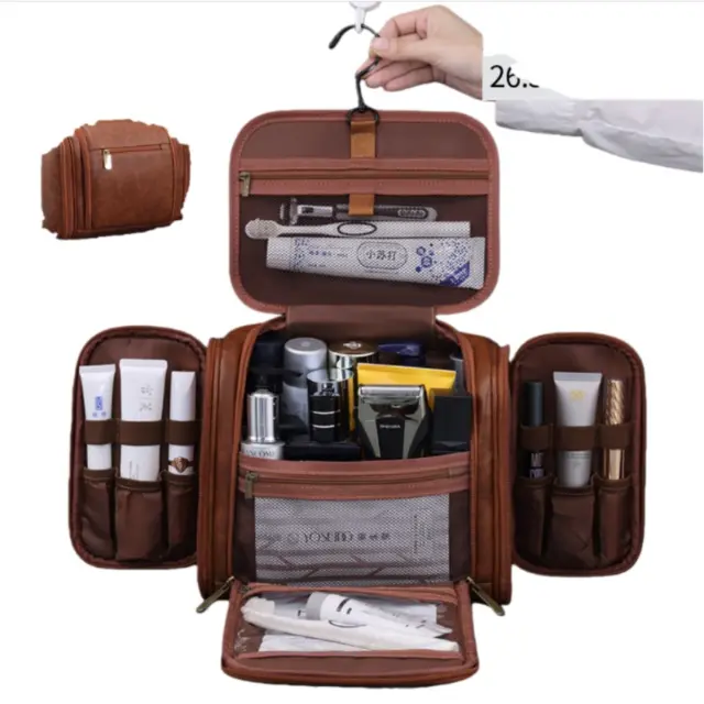 Vodoodporna zaščita: Ta moška toaletna torbica, izdelana iz visokokakovostnega PU usnja, nudi odlično vodoodporno zaščito za vaše stvari. Vodoodporni material ščiti vaše toaletne potrebščine pred razlitjem in vlago ter zagotavlja, da ostanejo suhe in v brezhibnem stanju. Ta funkcija je še posebej koristna pri potovanju, saj ščiti pred nenamernim puščanjem drugih predmetov v vaši prtljagi. Vodoodporna podloga je enostavna za čiščenje, kar olajša vzdrževanje. Ne glede na to, ali shranjujete tekočine, kreme ali gele, lahko zaupate tej torbi, da bo vaše stvari varno in varno. Zaradi robustne konstrukcije in vodoodpornih lastnosti je zanesljiva izbira za vsak potovalni scenarij, ki zagotavlja brezskrbnost in preprečuje morebitno škodo na vaših stvareh.
