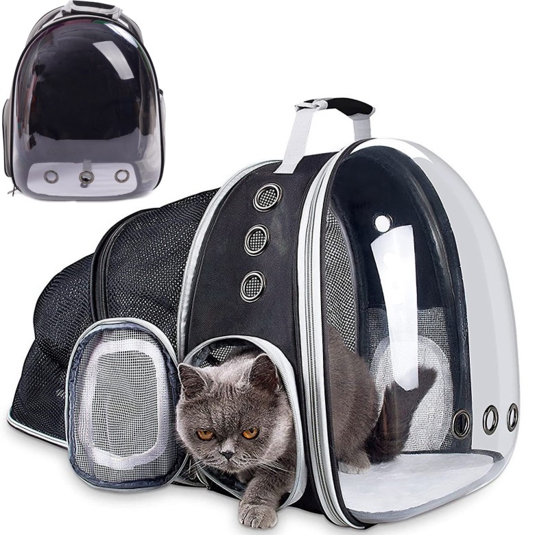Zložljiva nosilka za hišne ljubljenčke, transportni nahrbtnik - črna in siva