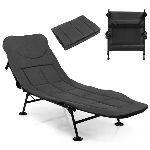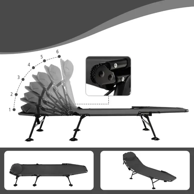 6-stopenjsko nastavljivo naslonjalo: Zložljivi naslonjalo je opremljeno s 6-stopenjsko nastavljivim naslonjalom, s katerim lahko udobno berete knjige, se sončite, igrate igre ali spite v ležečem ali ravnem načinu, ki ustreza vašim različnim potrebam. Mehanizem za nagibanje je enostavno nastavljiv.