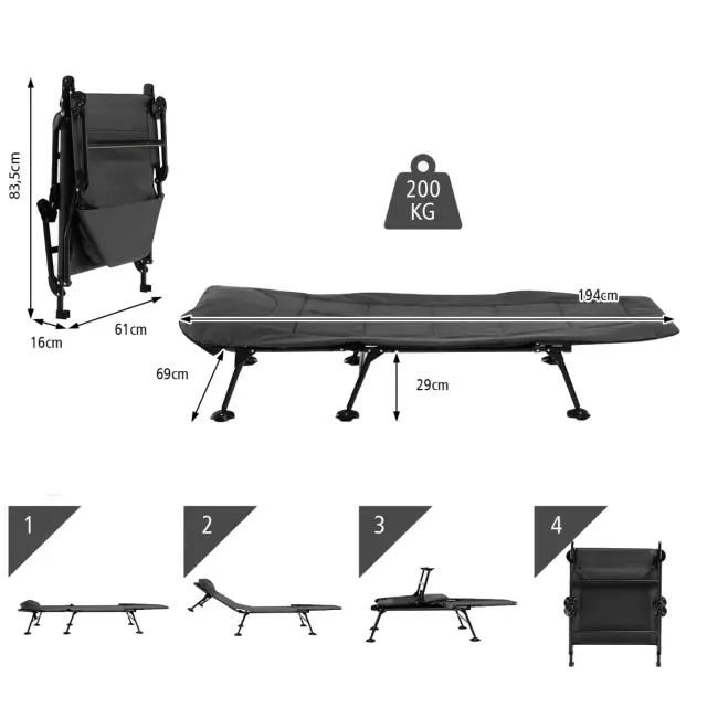 Zložljiva postelja za kampiranje 194 x 69 x 29 cm